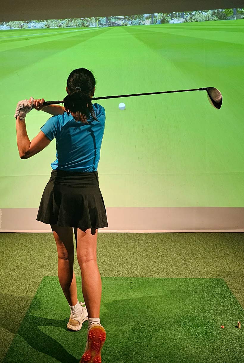 Unser Golf-Simulator steht das ganze Jahr über für dich bereit – ganz egal, wie es draußen aussieht.